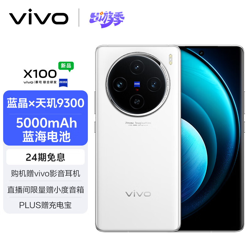 vivo X100 16GB+512GB 白月光 蓝晶×天玑9300 5000mAh蓝海电池 蔡司超级长焦 120W双芯闪充 拍照 手机价格:4599.00元!