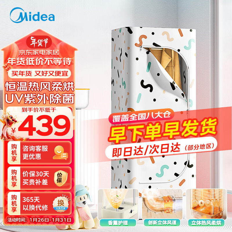 美的(Midea)烘干机家用小型 内衣婴儿衣服紫外线除菌 立体热风柔烘 烘衣烘鞋器 衣物护理干衣机 MHJ70-02VL价格:487.00元!