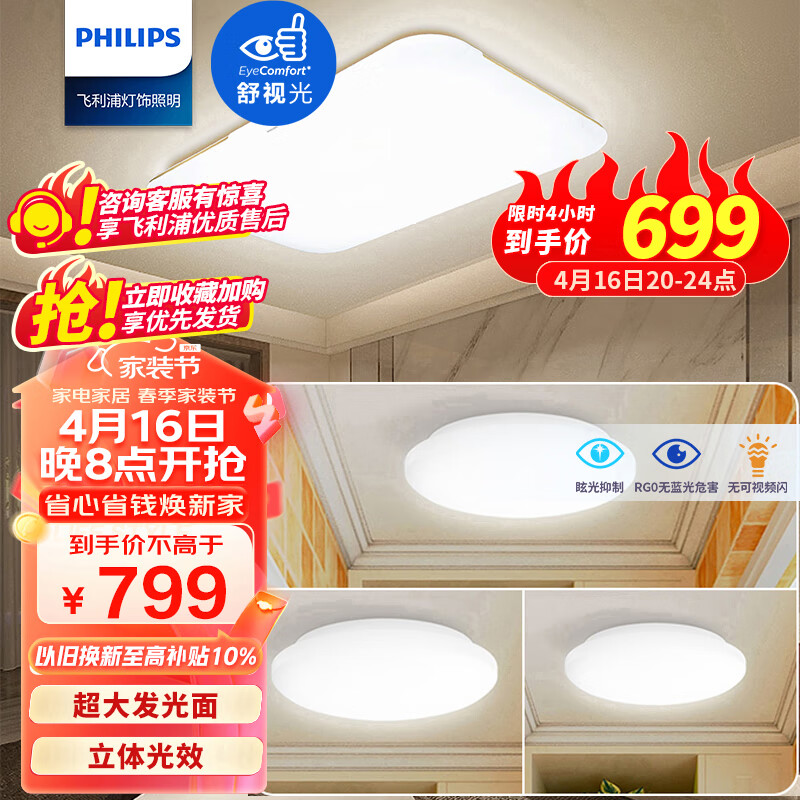 飞利浦(PHILIPS)led吸顶灯客厅灯现代简约餐厅灯三色可调灯具套餐三室一厅 品逸价格:1299.00元!