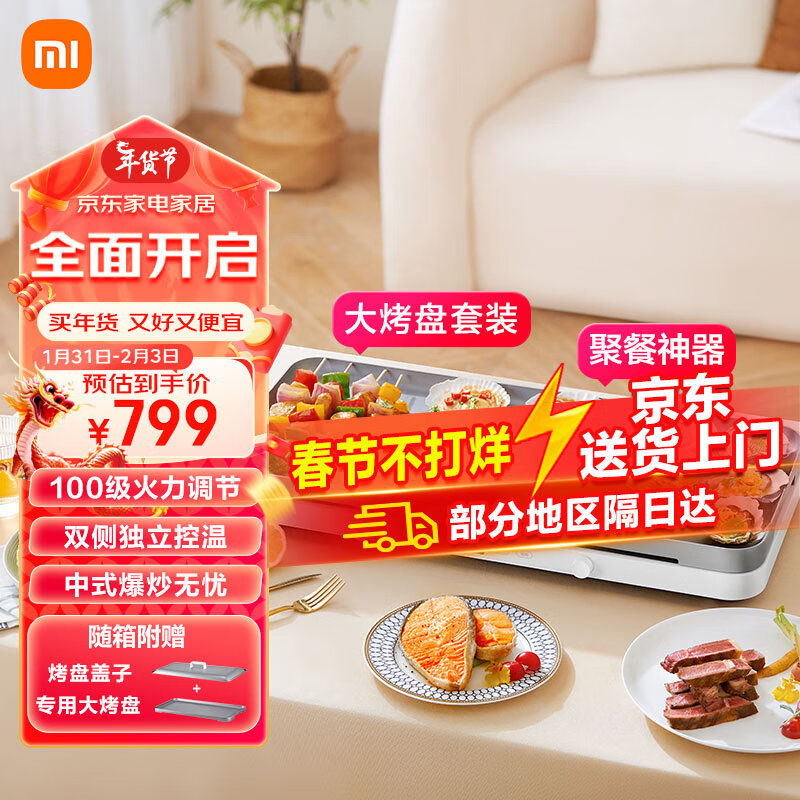 米家 小米双口电磁炉大烤盘套装 双灶电磁炉 家用多功能料理锅 电烧烤炉 米家APP智能食谱价格:799.00元!