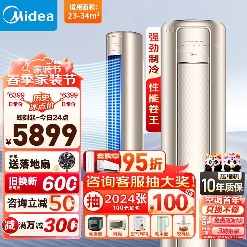 美的(Midea)2匹空调风尊 新一级能效 变频冷暖 客厅圆柱立式智能科技柜机 智能家电 以旧换新 KFR-51LW/N8MZB1价格:5899.00元!