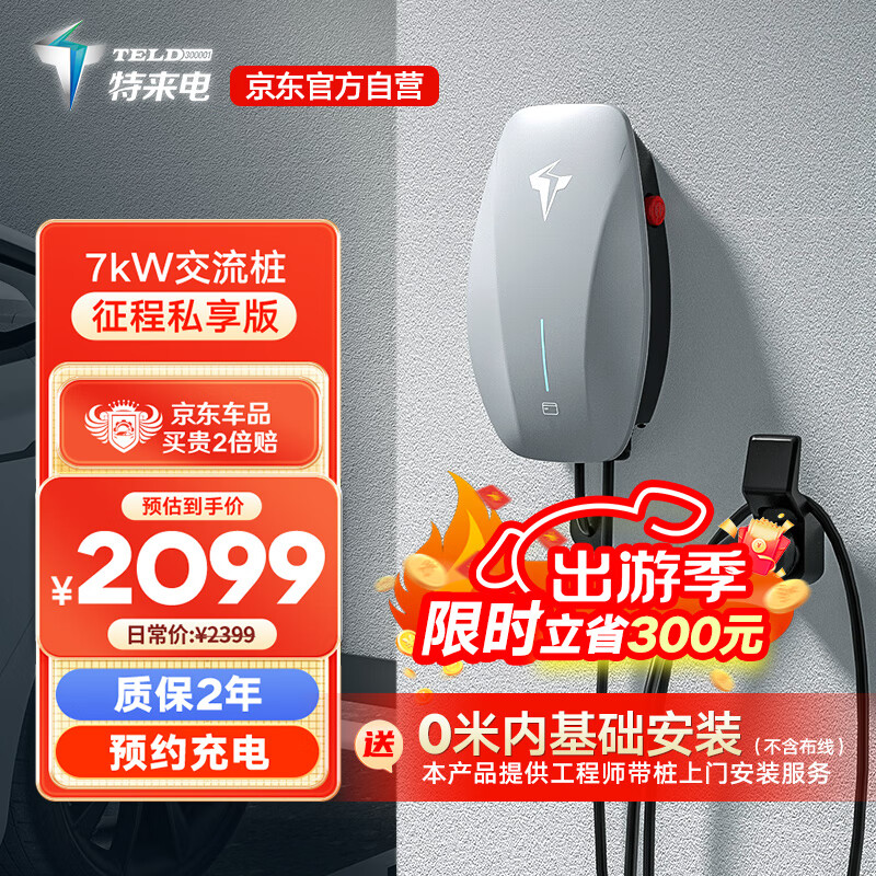 特来电汽车充电桩新能源7kW(送装一体)送0米基础安装适配于特斯拉model3/y理想大众id零跑问界m7家用价格:2099.00元!