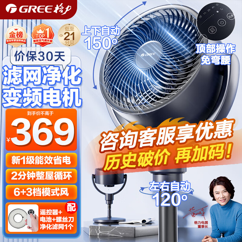 格力(GREE)【清新空气】3D摇头空气循环扇家用落地扇净化扇台式柔风电风扇轻音节能小风扇 FXDZ-20x62Bcg3价格:409.00元!