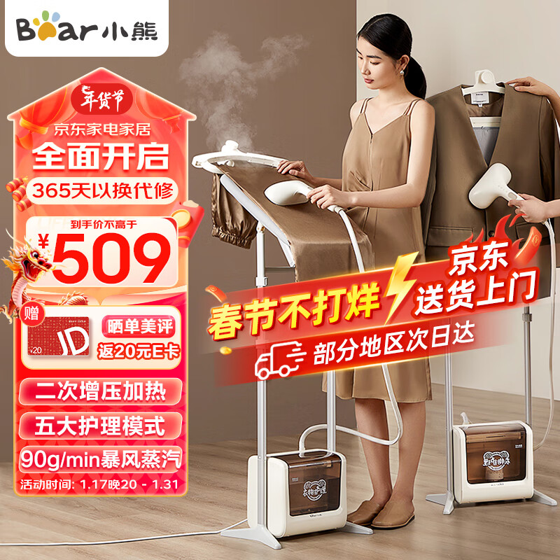 小熊(Bear)挂烫机家用双杆立式高效杀菌除螨蒸汽熨斗熨烫机手持挂烫机增压蒸汽烫衣服神器GTJ-B22E1价格:565.00元!