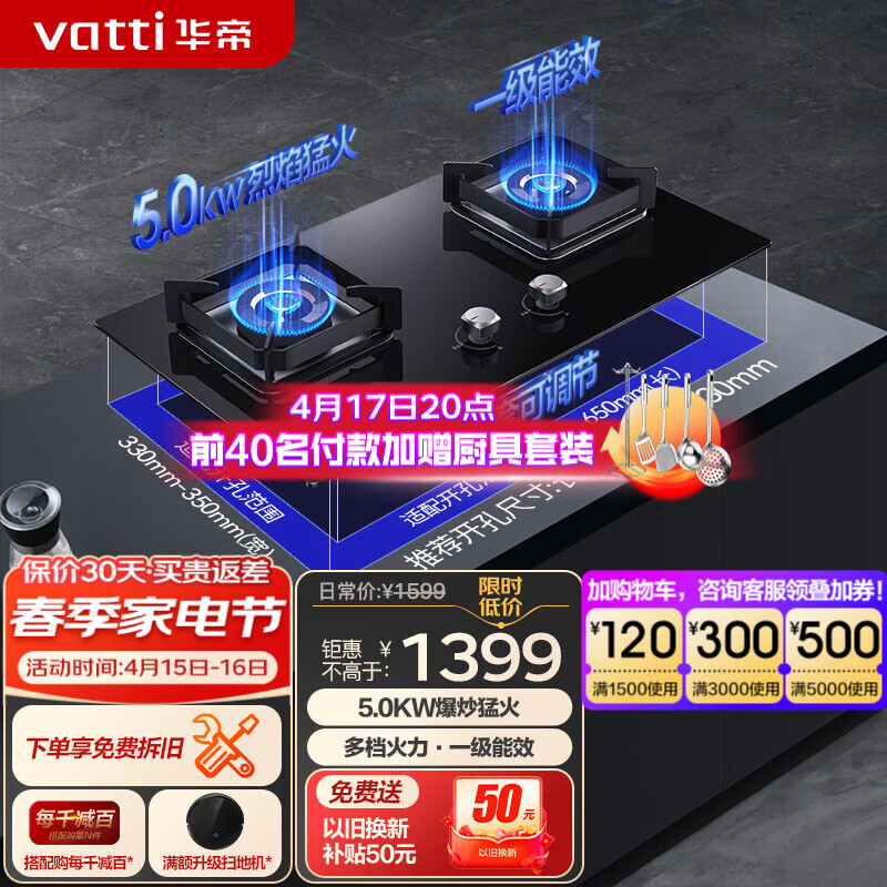 华帝(VATTI)燃气灶嵌入式台式 煤气灶双灶具5.0kw猛火灶台 多档火力精控 一级能效 i10073B 液化气价格:1399.00元!