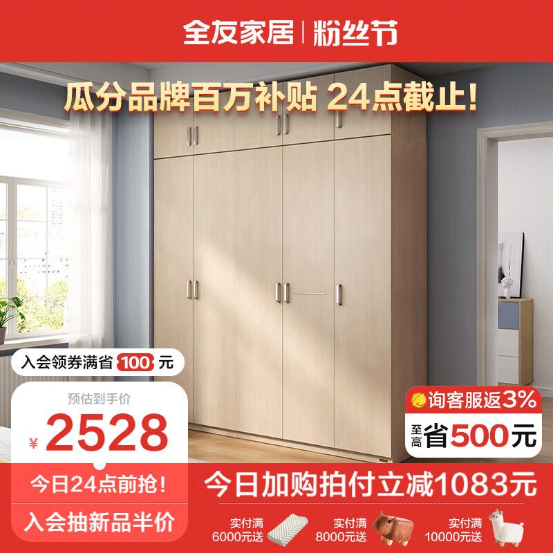 全友家居 衣柜自然原木风木纹衣柜多规格组合106302价格:3611.43元!