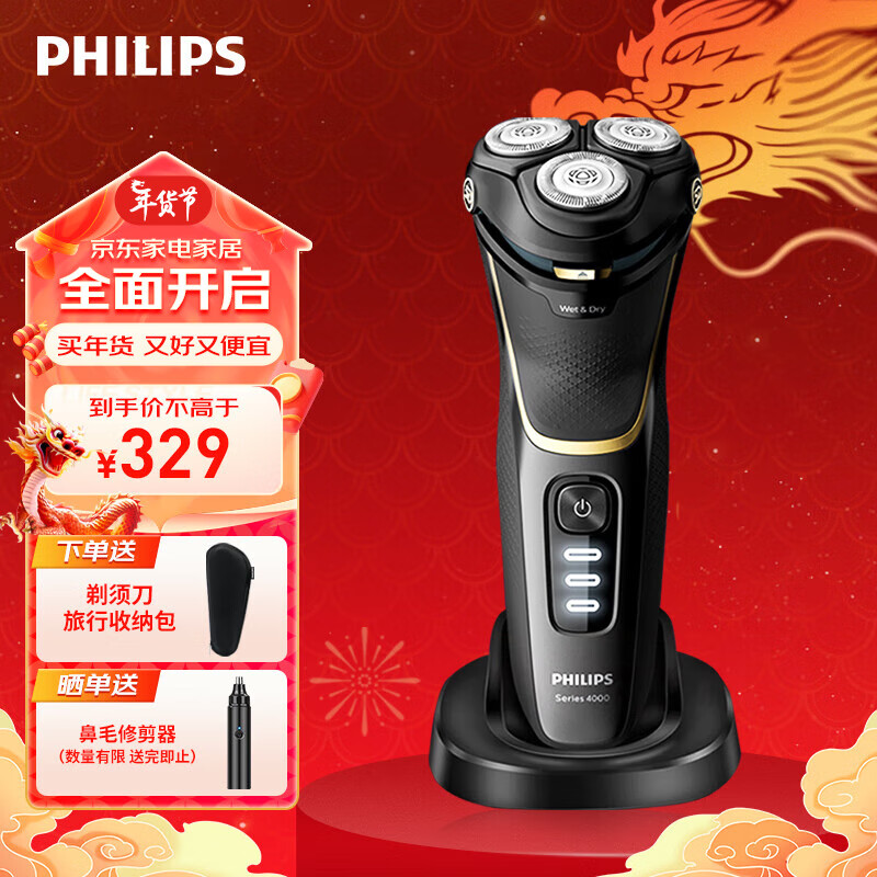 飞利浦(PHILIPS)剃须刀电动高端刮胡刀 全身水洗1小时快充胡须刀 男士生日/新年礼物送男友送老公送长辈 整机进口S4303/12价格:399.00元!