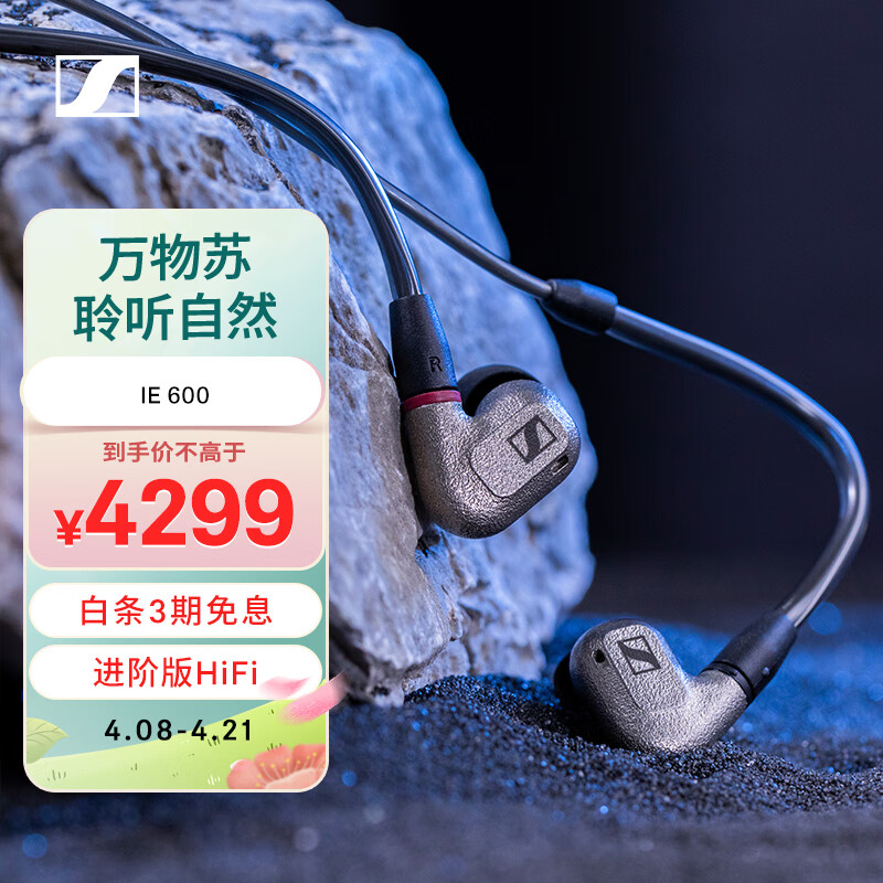 森海塞尔(Sennheiser)IE600 高保真HiFi音乐耳机非晶态锆外壳可拆卸MMCX耳机线有线 入耳式耳机 金属色价格:4299.00元!