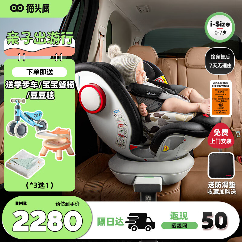猫头鹰(SAVILE)儿童座椅0-4-7岁360度旋转ISOFIX硬接口M178A妙转PRO深空黑价格:2280.00元!