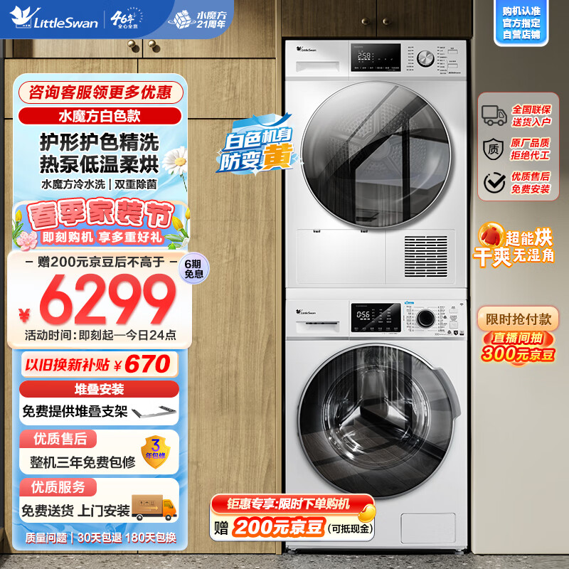 小天鹅(LittleSwan)水魔方洗烘套装 10KG滚筒洗衣机全自动+热泵烘干机【86+35】除菌除螨 白色 TG100VT86WMAD5+35价格:6499.00元!