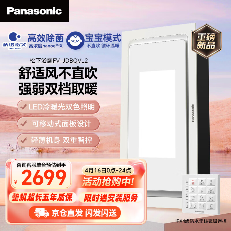 松下(Panasonic)风暖浴霸 浴霸暖风照明排气一体 通用吊顶式 FV-JDBQVL2大白盖价格:3262.00元!