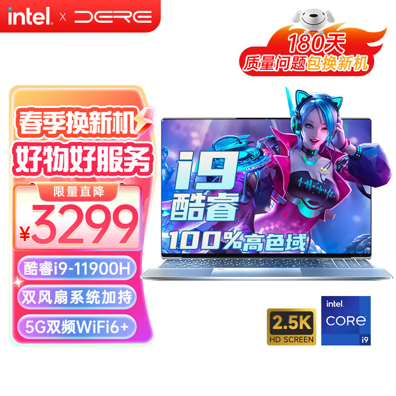 戴睿(dere)超能旗舰16英寸英特尔酷睿i9 笔记本电脑2.5K屏轻薄便携设计商务办公网课游戏本16G/512G魅影灰价格:3268.00元!