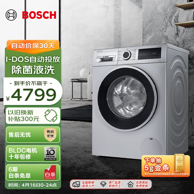 博世(BOSCH)【净效除菌】10KG变频全自动家用大容量1400转i-DOS智能投放15分钟速洗滚筒洗衣机WGA154A80W价格:5299.00元!