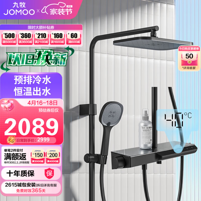 九牧JOMOO花洒套装智能预排冷水黑色大顶喷增压26175-695/DBC-1价格:2749.00元!