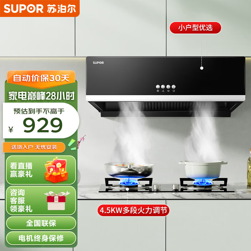 苏泊尔(SUPOR) 抽油烟机 中式油烟机套装 15立方家用小户型吸油烟机灶具套装 Z1D+DB19天然气价格:929.00元!