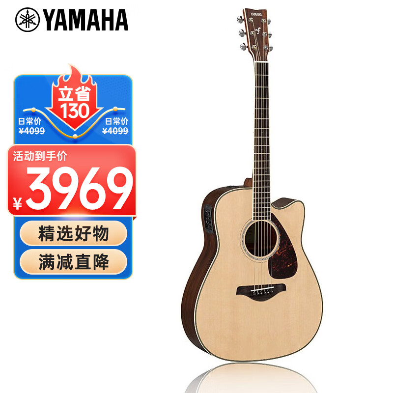 雅马哈(YAMAHA)FGX830C 电箱款 实木单板 初学者民谣吉他 缺角吉它 41英寸原木色价格:4099.00元!