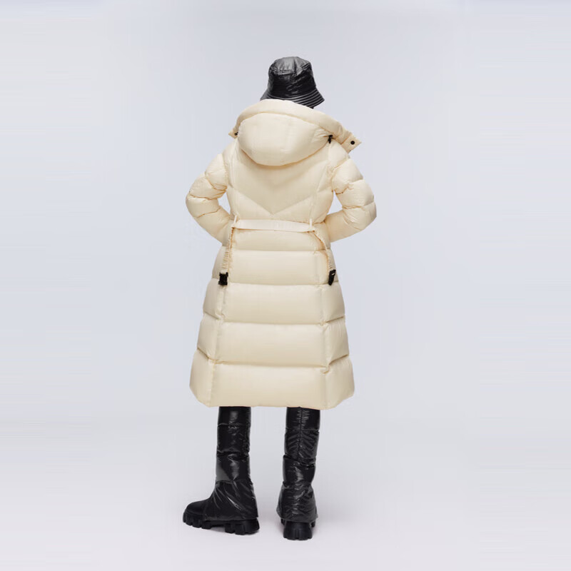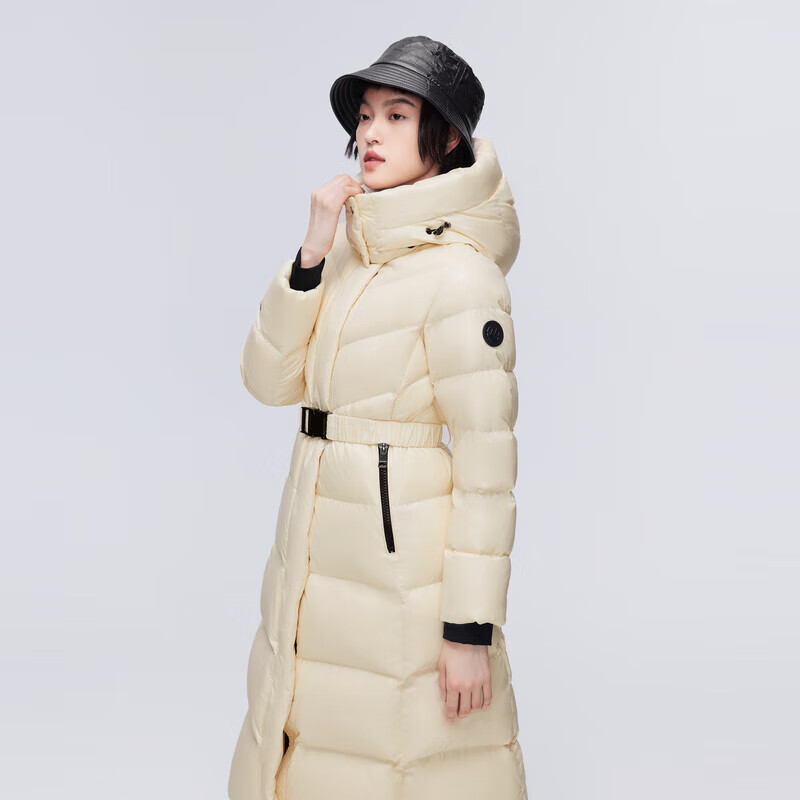 1、羽绒服长度合适,鹅绒保暖效果好,款式不臃肿,还有腰带,网上买比实体店优惠