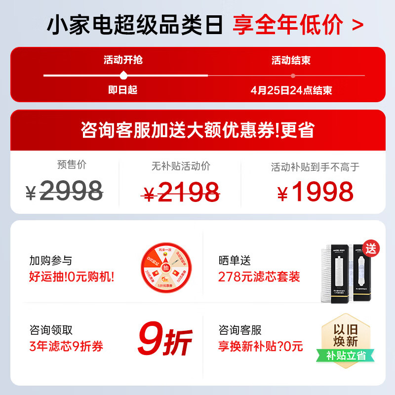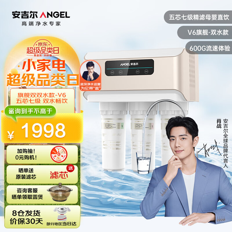 安吉尔净水器家用V6 五芯七级精滤母婴直饮水机 1.46升/分钟体验600G净水速度 厨下净水机滤芯 一级节水 V6旗舰-双水款(J2605-ROB60)价格:1997.00元!