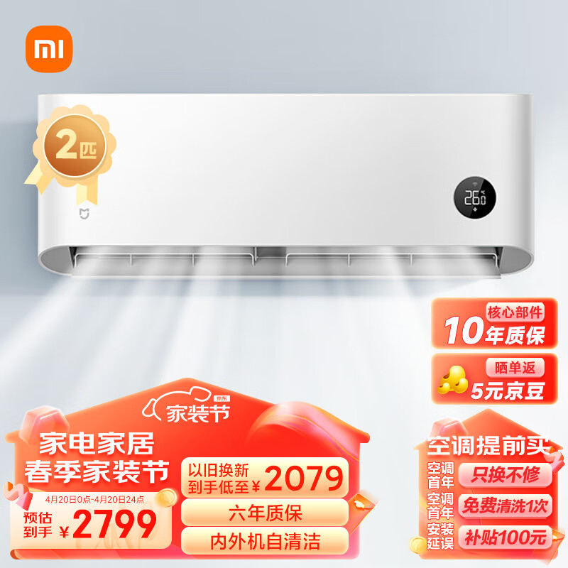 小米(MI)2匹 新一级能效 变频冷暖 自清洁 智能互联 壁挂式卧室挂机 KFR-50GW/N2A1 以旧换新价格:2799.00元!