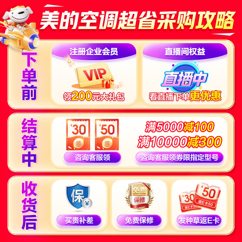 美的(Midea)3匹挂机 新能效变频节能冷暖两用 防直吹自清洁 商铺客厅壁挂式空调挂机 KFR-72GW/G1-3价格:6099.00元!