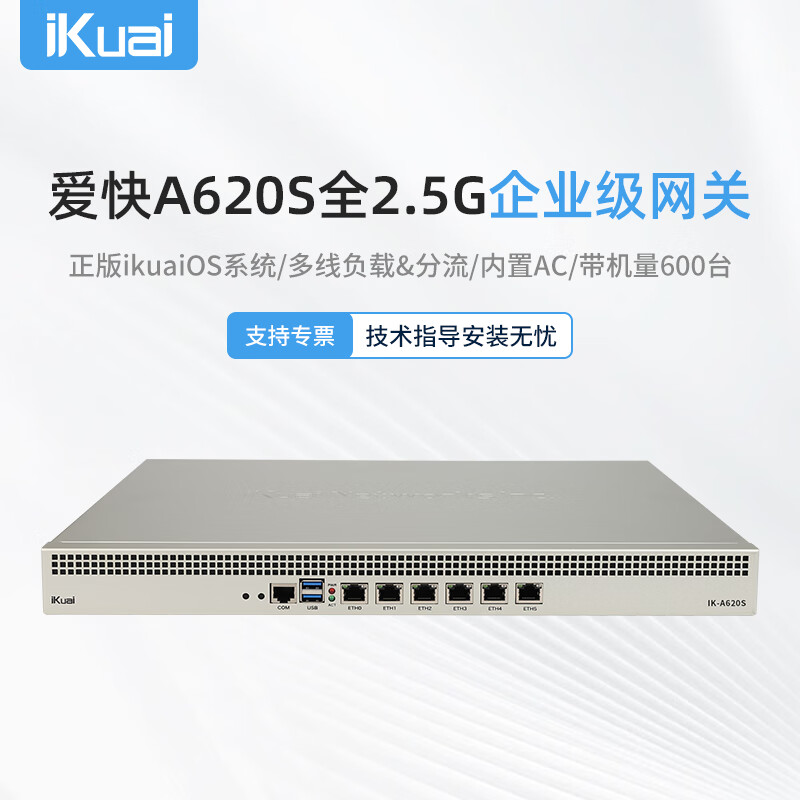 爱快(iKuai)全2.5G企业路由器 多WAN/多LAN口 一键认证/VPN/策略路由/日志审计 USB3.0 19英寸带机600台A620S价格:2499.00元!