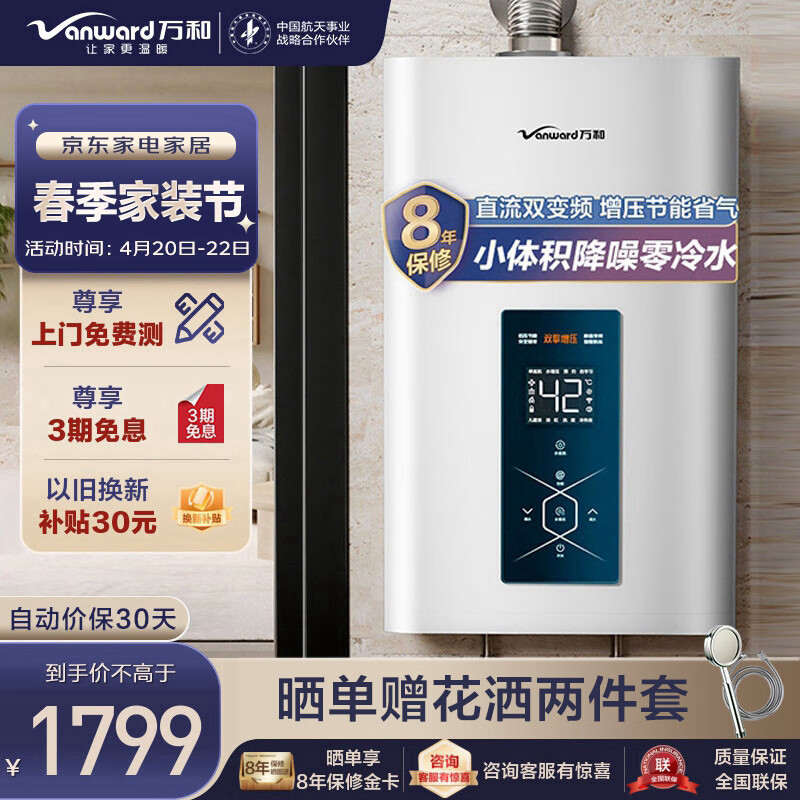 万和(Vanward)16升零冷水燃气热水器天然气 直流双变频增压防冻自适应恒温小体积降噪E享巡航 JSQ30-MS3D16价格:1899.00元!