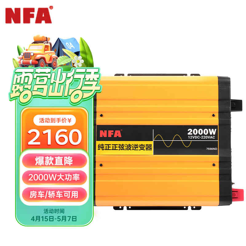 NFA车载大功率逆变器2000W纯正正弦波12V转220V车载冰箱转换器7556N价格:2160.00元!