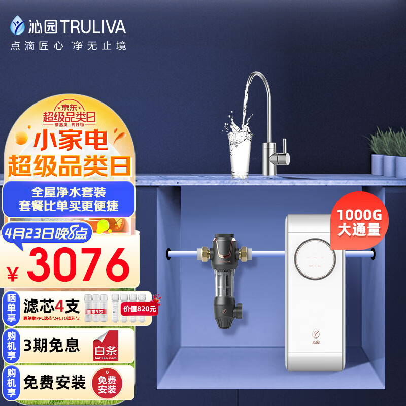 沁园(TRULIVA)小白鲸Pro1000G二件套装 净水器UR-S51046i+前置过滤器P-A5510 全屋净水套装价格:3076.00元!