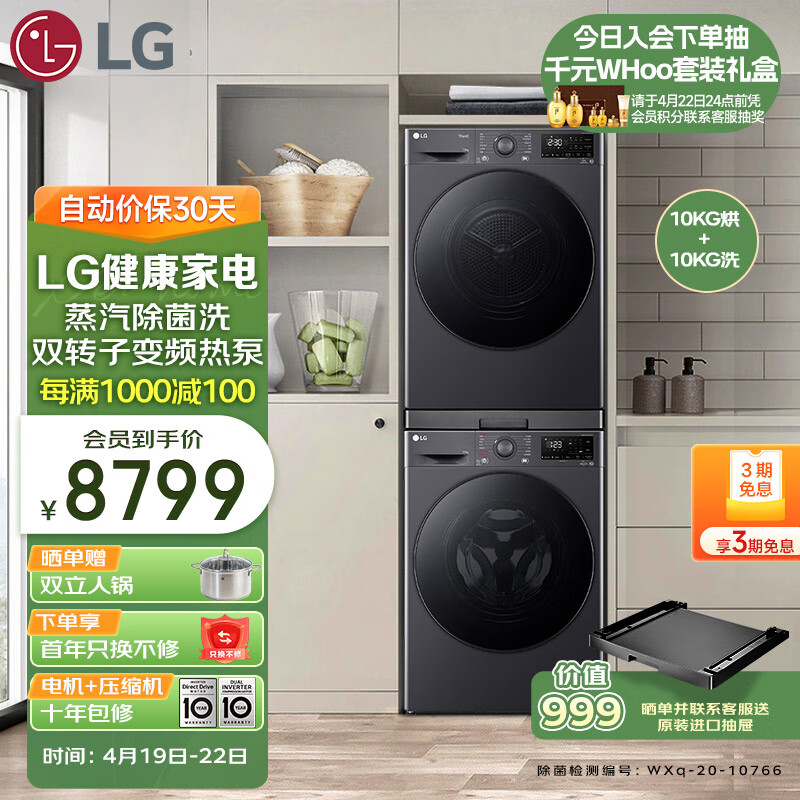 LG星云黑洗烘套装 10kg蒸汽除菌洗衣机+10kg进口双转子变频热泵烘干机家用 FCY10Y4M+RH10V3MVTW价格:9699.00元!