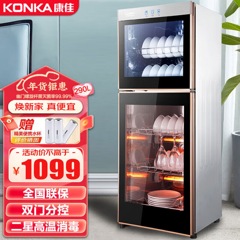 康佳(KONKA)消毒柜立式消毒碗柜商用家用臭氧高温二大容量餐具消毒柜290L双门分控ZTP380K9【企业采购】价格:1099.00元!