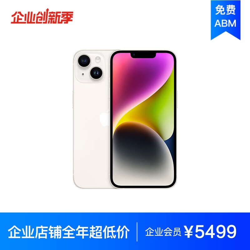 Apple iPhone 14 256GB 星光色A2884手机 支持移动联通电信5G MPW13CH/A【企业客户专享】价格:5659.00元!