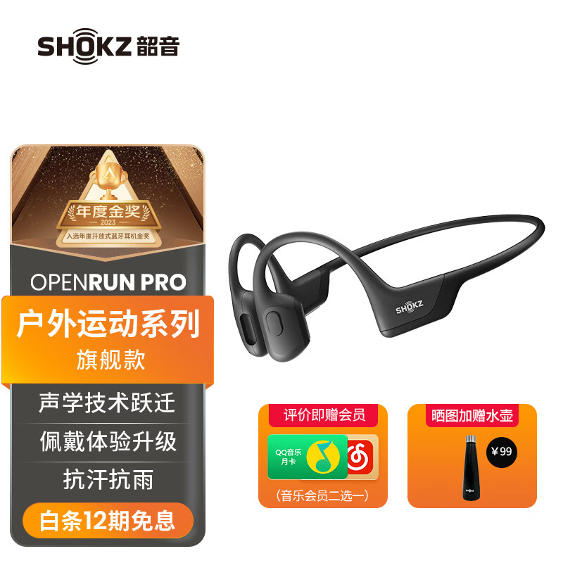 韶音(SHOKZ)OpenRun Pro骨传导蓝牙无线开放式耳机耳麦 不入耳式运动高音质 低频增强S810 骑士黑价格:1298.00元!
