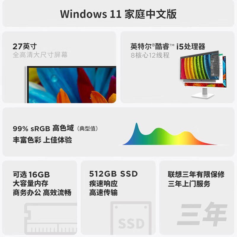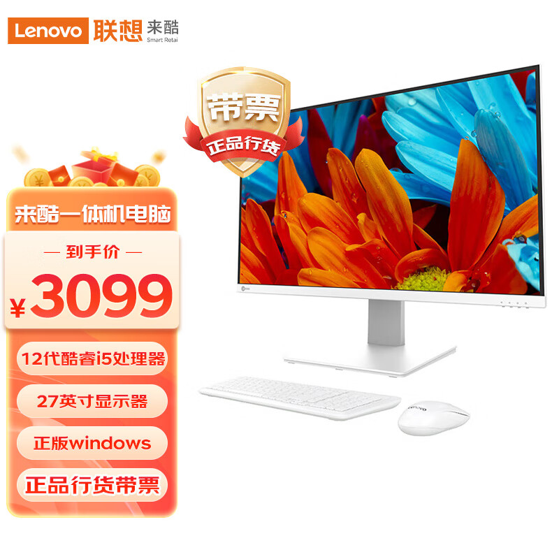 来酷Lecoo联想出品一体台式机电脑27英寸(12代酷睿i5-12450H 8G 512G Windows11 )白 无线键鼠价格:3099.00元!