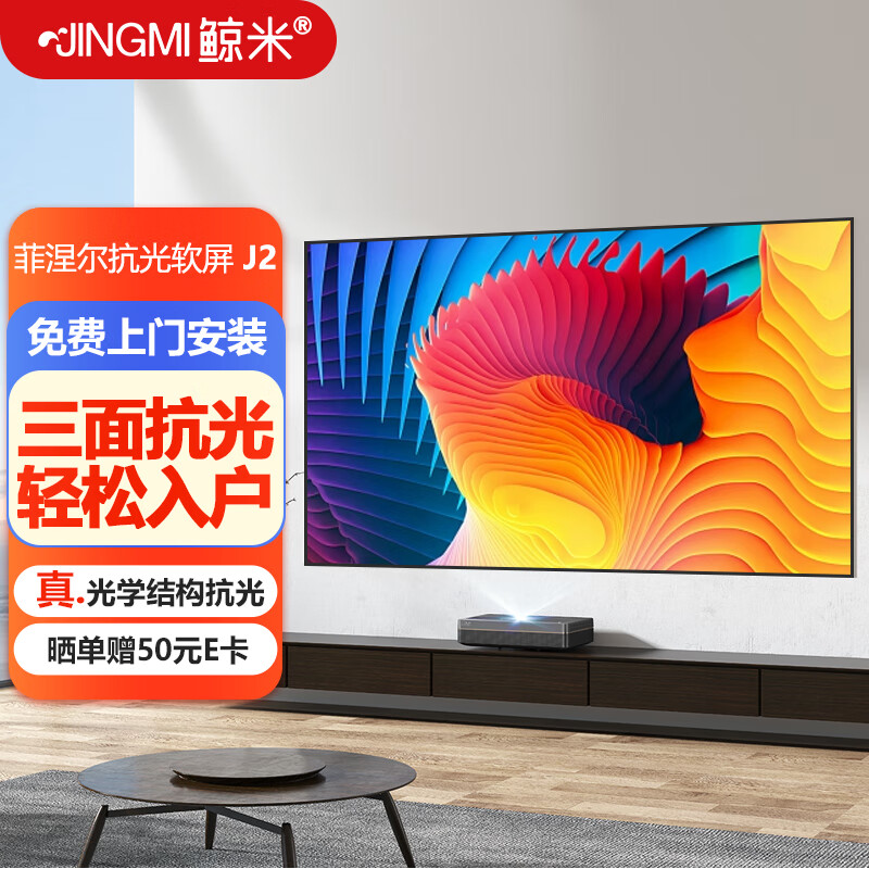 鲸米(JINGMI)150英寸16:9菲涅尔抗光幕布J2激光电视超短焦投影仪专用画框柔性软幕布抗光屏价格:27999.00元!