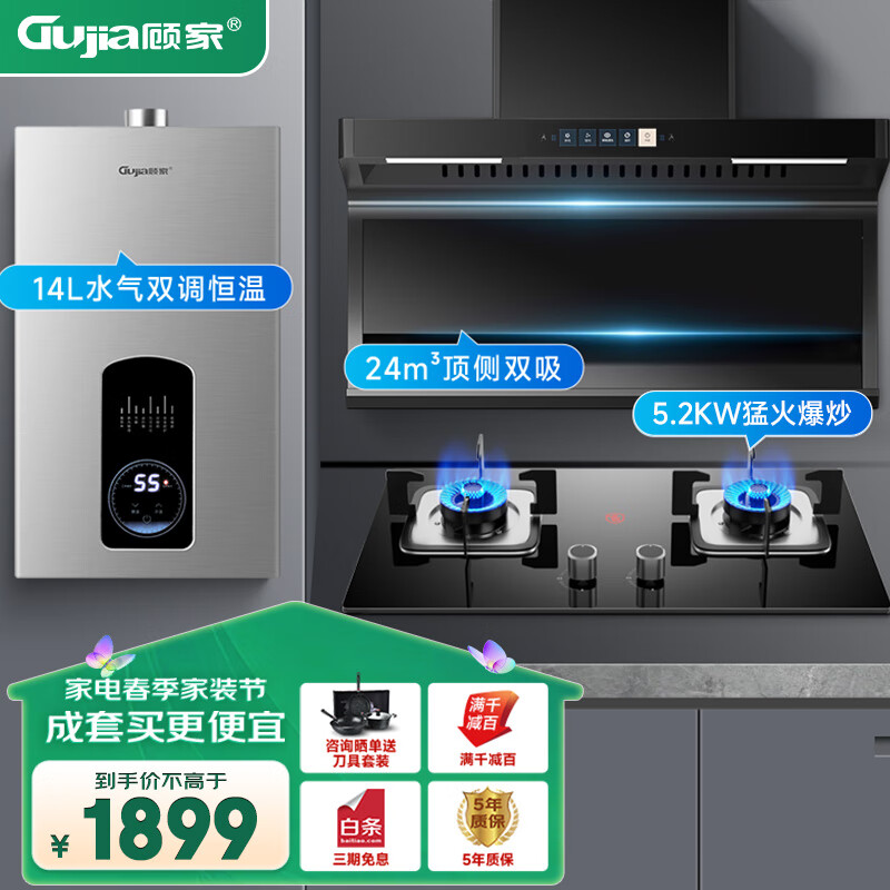 顾家(Gujia)顶侧双吸抽油烟机燃气灶烟灶套装家用厨房大吸力脱排式7字吸油烟机灶具套装 【烟灶热套购】14L燃热-天然气价格:2299.00元!