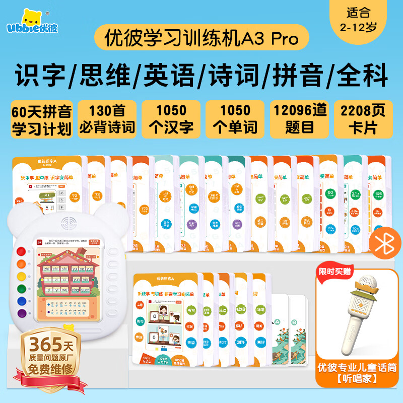 优彼思维训练机拼音学习机神器识字英语诗词卡片机儿童新年礼物全家福价格:1308.00元!