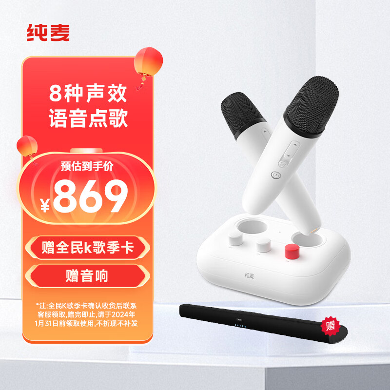 纯麦家庭KTV电视K歌无线麦克风话筒唱歌设备套装X2价格:869.00元!