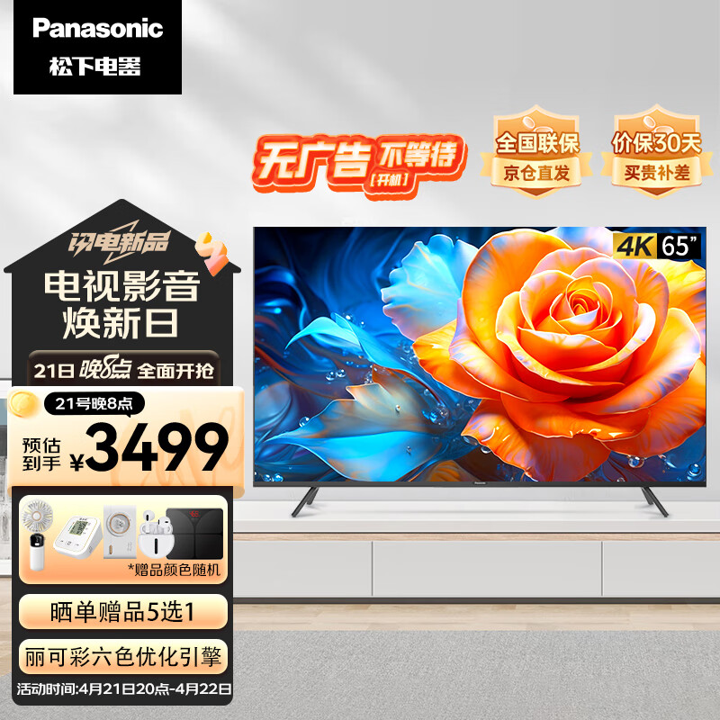 松下(Panasonic)电视LX560 65英寸 丽可彩4K屏MEMC HDR10 蓝牙语音 开机无广告智能电视机 TH-65LX560C价格:3499.00元!