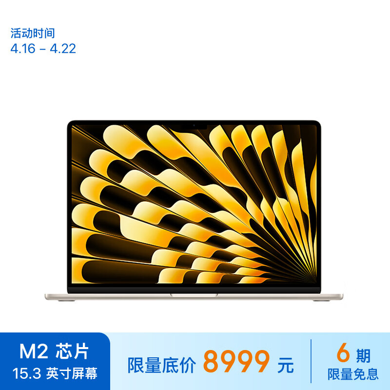 Apple/苹果2023款MacBookAir 15英寸 M2(8+10核)8G 512G星光色轻薄笔记本电脑MQKV3CH/A价格:11999.00元!