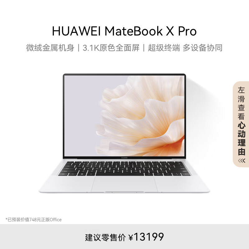 华为MateBook X Pro微绒典藏版笔记本电脑 13代酷睿处理器/3.1K原色触控屏/商务办公本 i7 32G 2T 锦白价格:13199.00元!
