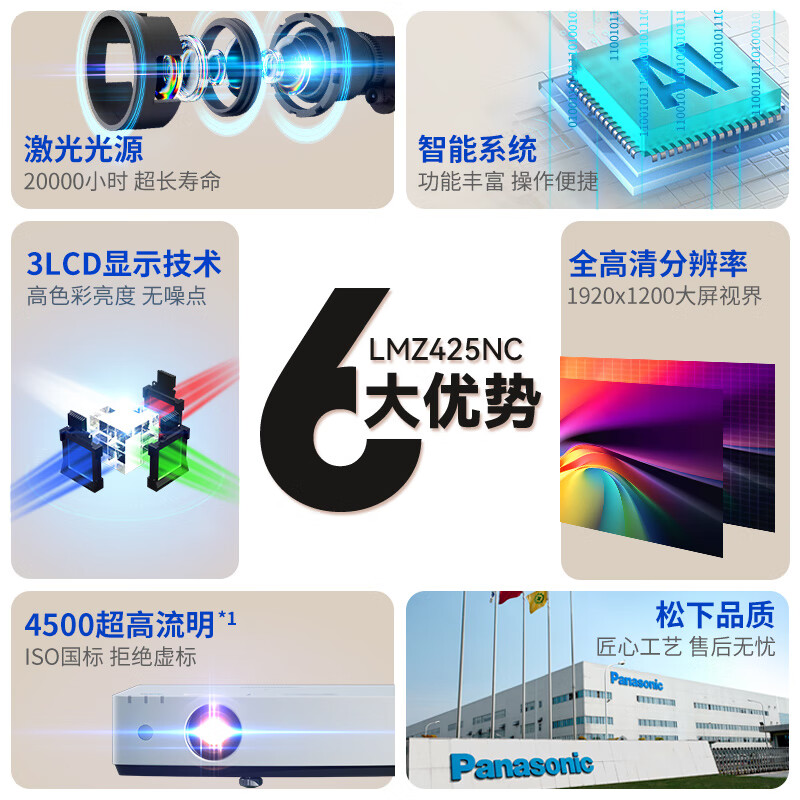 松下PT-LMZ425NC智能激光投影仪家用办公白天会议室专用家庭影院培训教学商务机(WUXGA 4500流明)价格:13888.00元!