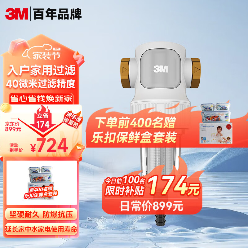 3M净水器家用净水机无需换芯40微米过滤全屋前置过滤器 QTURN-40GR价格:1049.00元!
