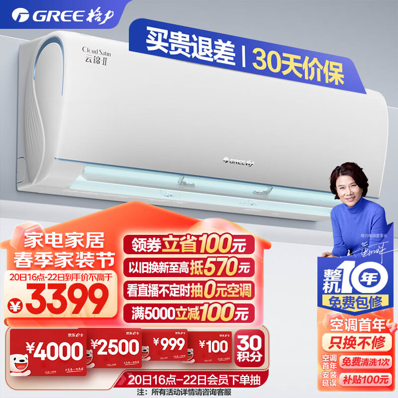 格力(GREE)空调 京东小家智能生态 1.5匹 云锦Ⅱ 新1级能效 壁挂式卧室挂机(KFR-35GW/NhAd1BAj)价格:3499.00元!