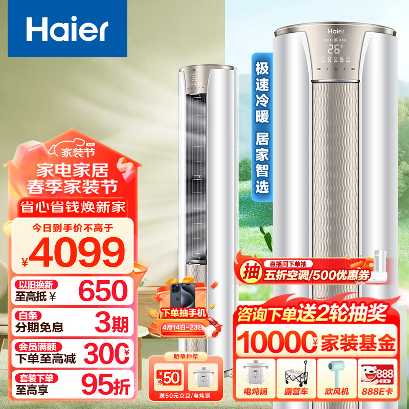 海尔(Haier)2匹 静悦 变频新能效 客厅圆柱空调立式柜机自清洁 京东小家智能 KFR-50LW/06KCA83U1 以旧换新价格:4069.00元!