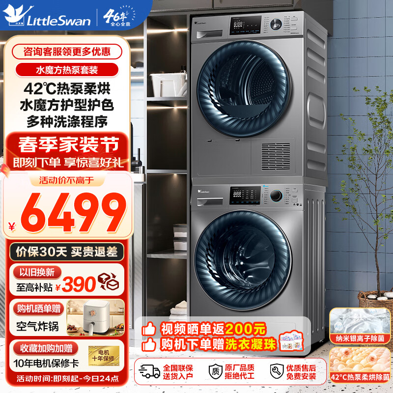 小天鹅(LittleSwan)小天鹅水魔方洗烘套装 10KG全自动变频家用洗衣机 护衣除菌烘干机 烘被子防缠绕 868+868价格:5999.00元!