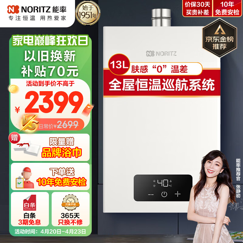 能率(NORITZ)13升燃气热水器天然气 全屋恒温巡航 多点用水 下置风机 GQ-13EA2FEX(JSQ25-EA2)【金榜认证】价格:2394.00元!