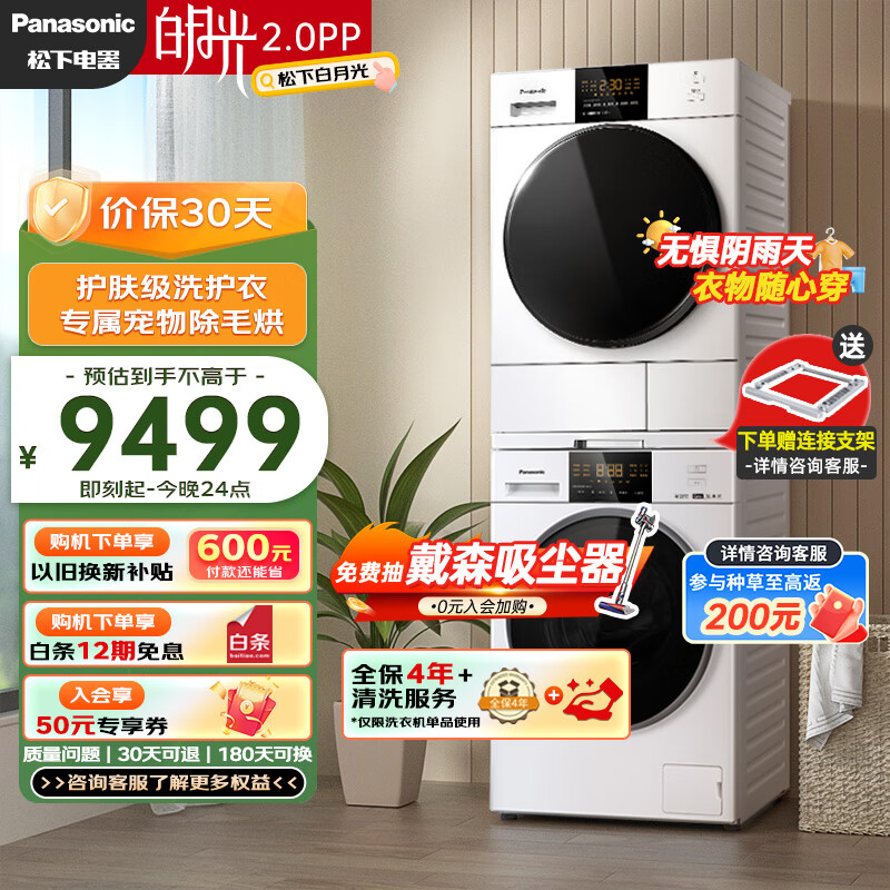 松下(Panasonic)白月光2.0PP 升级护理版 10+10洗烘套装 变频压缩机 光动银除菌 泡沫净 宠物除毛烘 3E1AK+82QR1价格:9499.00元!