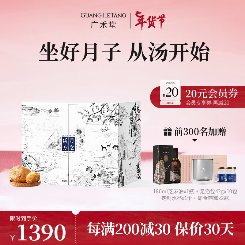 广禾堂 月之汤方汤料包28天食材产后剖腹菌菇五红小产坐月子产妇哺乳期营养补品送礼盒月子餐30天小月子价格:2080.00元!