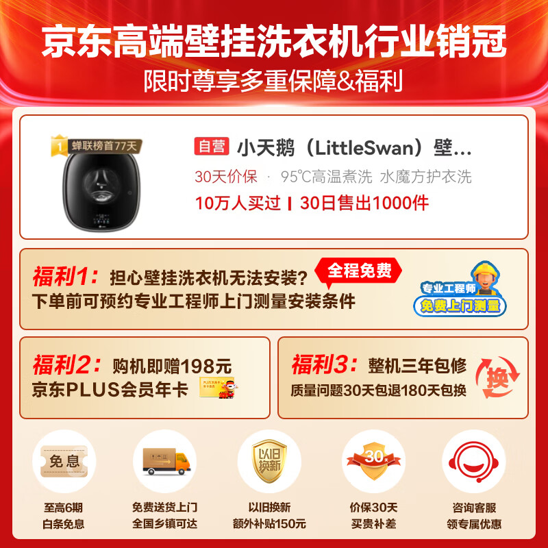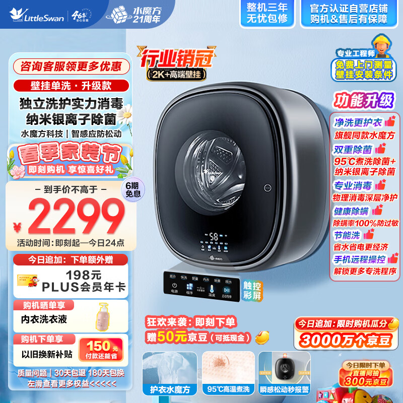 小天鹅(LittleSwan)壁挂洗衣机TG30V860EPRO 小海绵 3KG迷你滚筒洗衣机全自动 儿童婴儿洗衣机小型 挂壁式 水魔方价格:2299.00元!