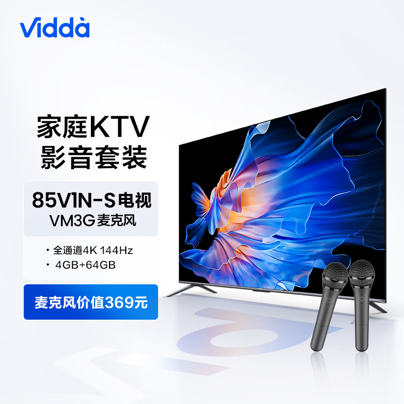 Vidda 85V1N-S 海信 85英寸 144Hz高刷 游戏电视+VM3G-T麦克风套装 K歌电视 家庭KTV 无线降噪话筒价格:5559.00元!